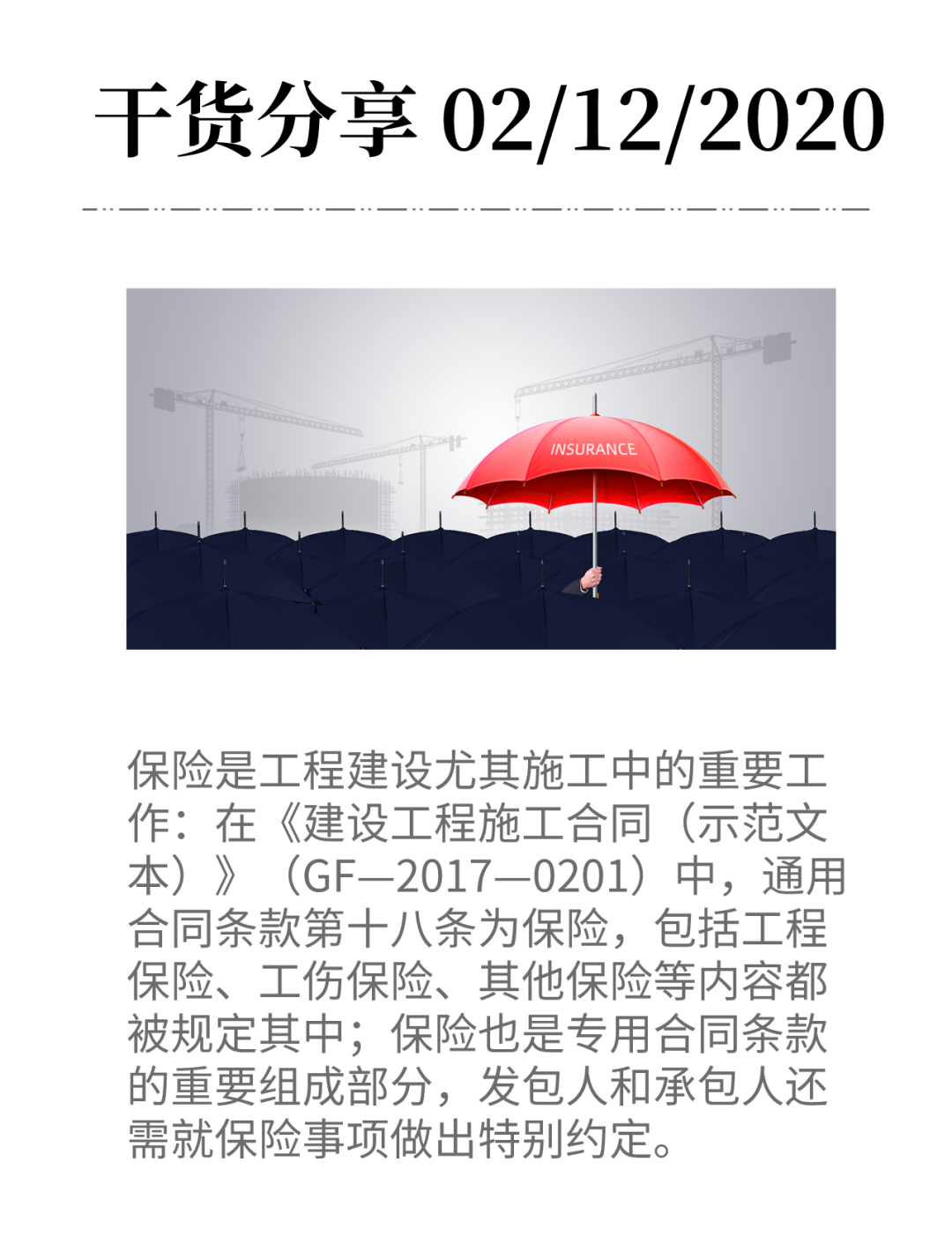 繼2011年修訂后的《建筑法》明確建工意外險屬建議投保型險種后,2013年版及現(xiàn)行《建設(shè)工程施工合同(示范文本)》都規(guī)定:除專用合同條款另有約定外,發(fā)包人應(yīng)投保建筑工程一切險或安裝工程一切險;除專用合同條款另有約定外,承包人應(yīng)為其施工設(shè)備等辦理財產(chǎn)保險。
