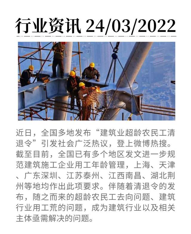 為減少此類安全事故發(fā)生,從用工源頭排除安全隱患。自2019年起,上海、天津、廣東深圳、江蘇泰州、江西南昌、湖北荊州等地陸續(xù)出臺(tái)相關(guān)政策清退超齡農(nóng)民工,對(duì)農(nóng)民工的性別年齡等嚴(yán)格管理。除了上述地區(qū)以外,其他地方也陸續(xù)發(fā)布新規(guī),要求以下這三類農(nóng)民工禁止進(jìn)入施工現(xiàn)場(chǎng)從事施工作業(yè),即18周歲以下人員、60周歲以上男性工人、50周歲以上女性工人。