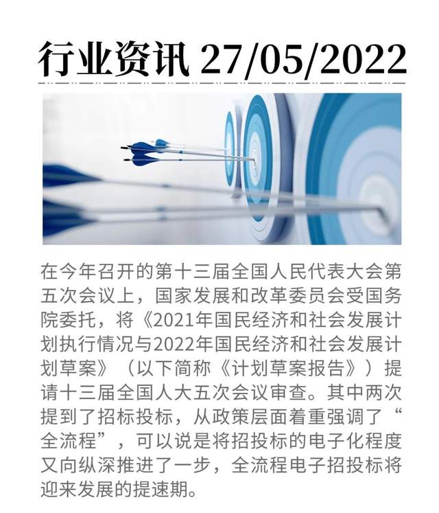 根據(jù)《計(jì)劃草案報(bào)告》內(nèi)容明確:2022年要推動完善招標(biāo)投標(biāo)法律法規(guī)和制度規(guī)則,全面推行招標(biāo)投標(biāo)全流程電子化,編制電子招標(biāo)投標(biāo)技術(shù)標(biāo)準(zhǔn)和數(shù)據(jù)規(guī)范。