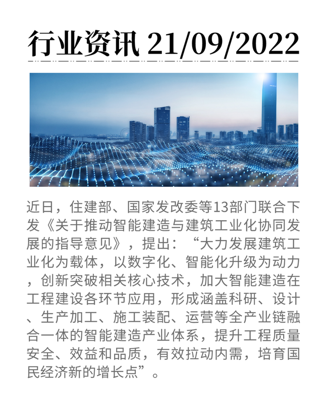 發(fā)布智能建造新技術(shù)新產(chǎn)品創(chuàng)新服務(wù)典型案例,編制智能建造白皮書(shū),推廣數(shù)字設(shè)計(jì)、智能生產(chǎn)和智能施工。