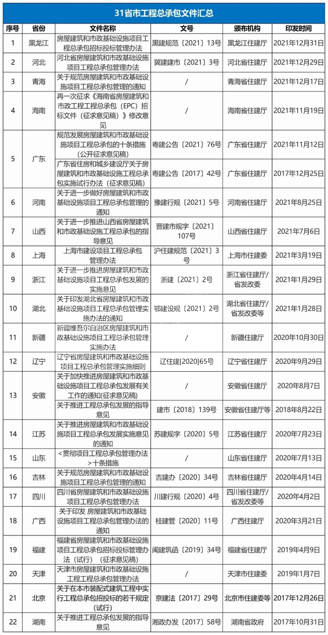 △各省市工程總承包政策匯總(部分省暫未發(fā)文)